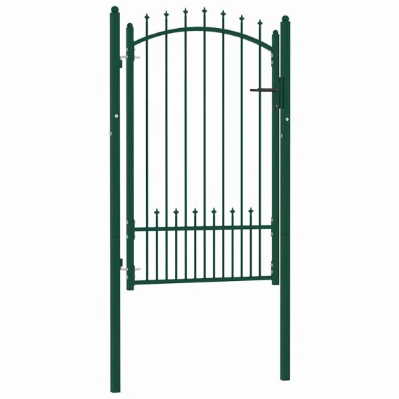 Wykonana z wytrzymałej stali furtka ogrodzeniowa ma solidną konstrukcję i została pomalowana proszkowo w celu zabezpieczenia przed korozją. Dzięki pionowym prętom z grotami i mocnym, poziomym prętom wzmacniającym zapewnia ona wysoki stopień bezpieczeństwa. Wykończenie w formie łuku dodaje jej elegancji. Wyposażono ją w dwa solidne słupki i trwałe zawiasy dla ułatwienia montażu. W zestawie znajduje się również zamek z trzema pasującymi kluczami.