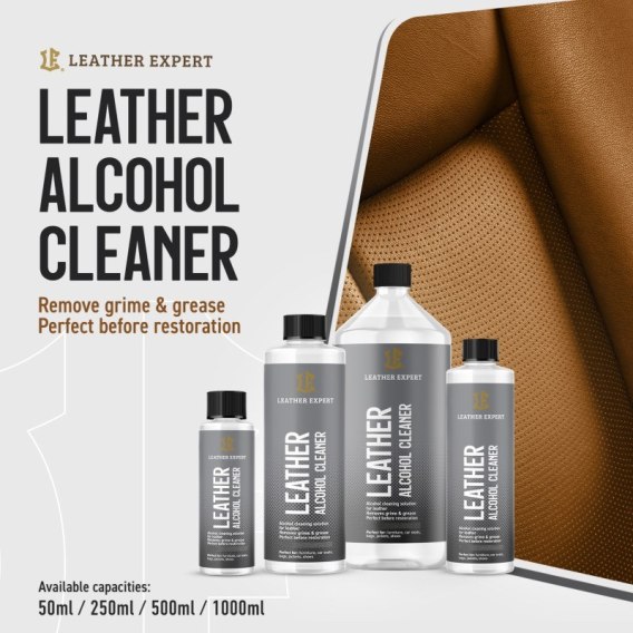 Leather Alcohol Cleaner 500ml przygotowuje powierzchnię skóry do farbowania. Używać w połączeniu z bawełnianą szmatką. Zalety: delikatny, niedrażniący zapach bardzo skutecznie odtłuszcza skórę zastosowanie profesjonalne i konsumenckie Leather Alcohol Cleaner znajduje zastosowanie w renowacji różnego rodzaju skór, obuwia, galanterii i torebkach, a także w samochodach i meblach skórzanych. Używać do skóry naturalnej. Nie stosować do zamszu i nubuku. Jak używać? Upewnij się, że skóra została dobrze oczyszczona i przygotowana. Do czyszczenia używamy Leather Cleaner albo Leather Mousse. Następnie należy usunąć częściowo stare wykończenia za pomocą Leather Preparer. Leather Alcohol Cleaner używamy do odtłuszczenia powierzchni oraz usunięcia resztek rozpuszczonej farby. Tak przygotowana skóra zwiększy przyczepność farby. Farbę Leather Colourant nakładaj za pomocą gąbki lub pistoletu natryskowego do uzyskania zadowalającego efektu.W celu lepszego zabezpieczenia powłoki należy nałożyć Leather Top Coat. Przez 5 dni po naprawie nie czyścić i nie konserwować skóry.