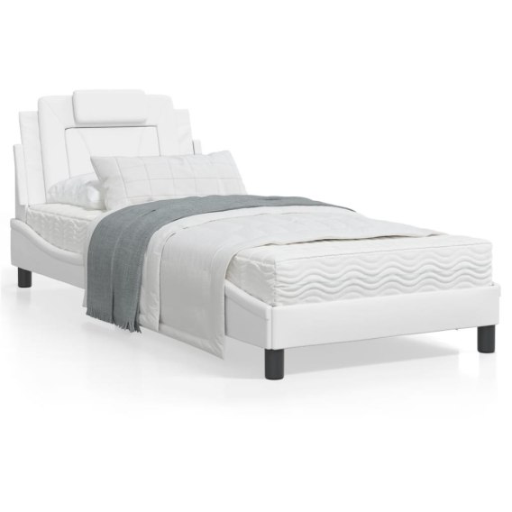 • Rama łóżka z LED, biała, 90x190 cm, sztuczna skóra Lumarko!
