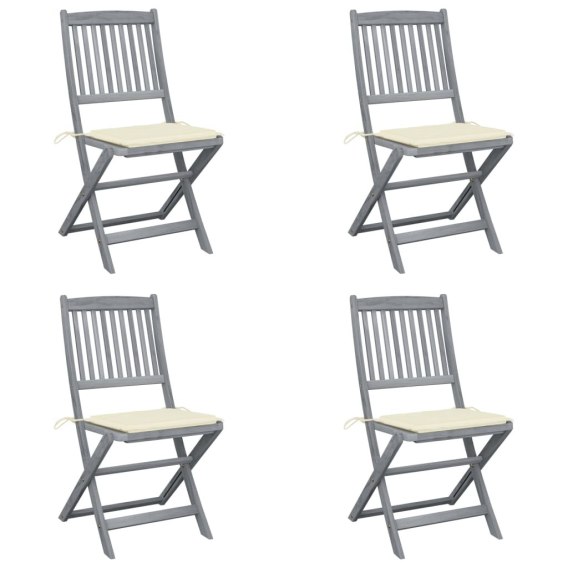 • Składane krzesła ogrodowe, 4 szt., poduszki, drewno akacjowe Lumarko!