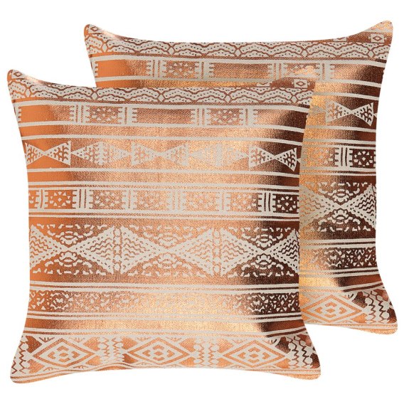 • Zestaw 2 poduszek dekoracyjnych OUJDA Bawełna 50 x 50 cm Miedziany Wzór geometryczny