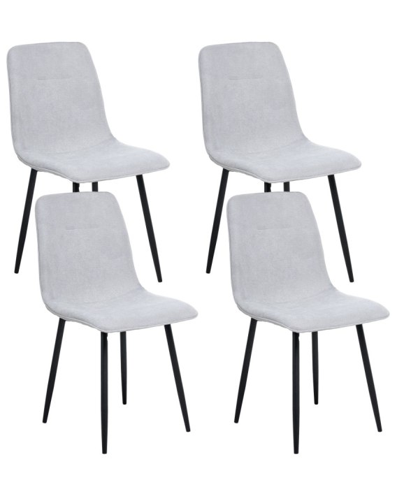 Odmień wygląd swojej jadalni dzięki temu stylowemu zestawowi 4 krzeseł. Miękka, wysokiej jakości tapicerka zapewnia komfort siedzenia, a smukłe, czarne nogi z żelaza dodają nowoczesnego charakteru i zapewniają stabilność. Brak podłokietników oraz neutralna kolorystyka sprawiają, że krzesła idealnie pasują do każdego wystroju jadalni.