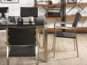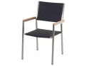 Elegancki komplet mebli ogrodowych, składający się ze stołu i 6 krzeseł, wprowadzi stylowy charakter do każdego ogrodu. Solidna rama i nogi ze stali szlachetnej zapewniają trwałość i stabilność mebli. Krzesła wyposażone są w podłokietniki, a możliwość sztaplowania ułatwia ich przechowywanie. Precyzyjnie wykonany z hartowanego szkła, czarny blat stołu doskonale komponuje się z czarnymi krzesłami z syntetycznego rattanu, a srebrna konstrukcja dodaje całości blasku. Połączenie wysokiej jakości materiałów i nowoczesnego designu sprawia, że zestaw będzie służył przez wiele lat.