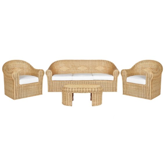 • Zestaw ogrodowy ze stolikiem dla 5 osób LIVADEIA Rattan Naturalny
